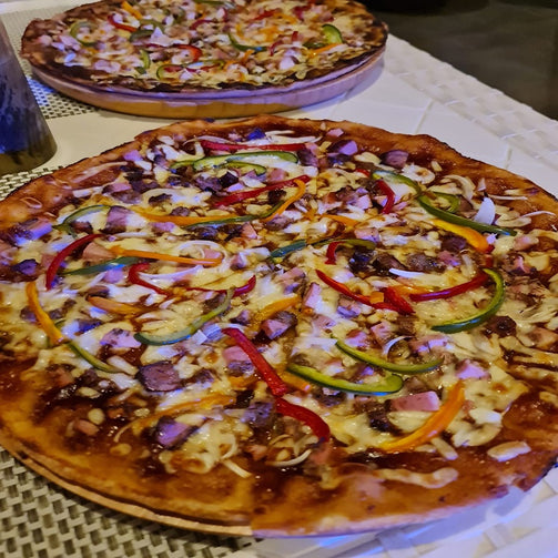 Enjoy our specialty 12" Pizza with Jerk Chicken, Mozzarella Cheese and Jerk or Barbeque Sauce