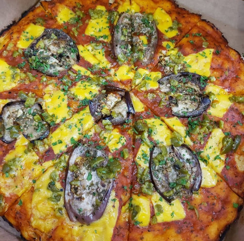 Enjoy our specialty 12" Pizza with Eggplant or Zucchini, Roasted Peppers, Mozzarella Cheese in a Marinara Sauce.